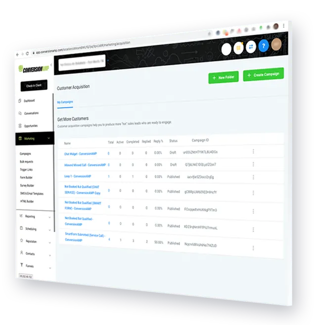 With ConversonAmp, you'll be able to run automated follow up campaigns to any Lead, Prospect, or Client all in one central place.